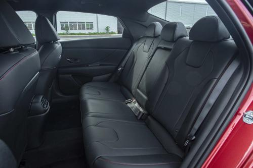 Khoang cabin của Hyundai Elantra 2025 được thay đổi toàn bộ với không gian tân tiến và phần nội thất cao cấp hơn. Bên trong Elantra làm từ vật liệu da kết hợp cùng kim loại. Sang thế hệ mới, Elantra sử dụng nền tảng khung gầm K3 thế hệ mới giúp trọng lượng xe nhẹ hơn. Những điều này kết hợp lại vô tình giúp xe tối ưu được không gian bên trong.