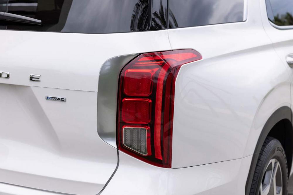 Di chuyển về phía đuôi xe, Hyundai Palisade 2025 được thiết kế theo form vuông vức đầy nam tính. Nổi bật là cụm đèn hậu LED bố trí gọn gàng, kiểu dáng đồng bộ giống cụm đèn trước. Bên cạnh đó, cản sau cỡ lớn được bọc nhôm sáng bóng. Đặc biệt, ống xả được tạo hình vuông đặt cạnh nhau càng làm tăng độ mạnh mẽ cho xe.
